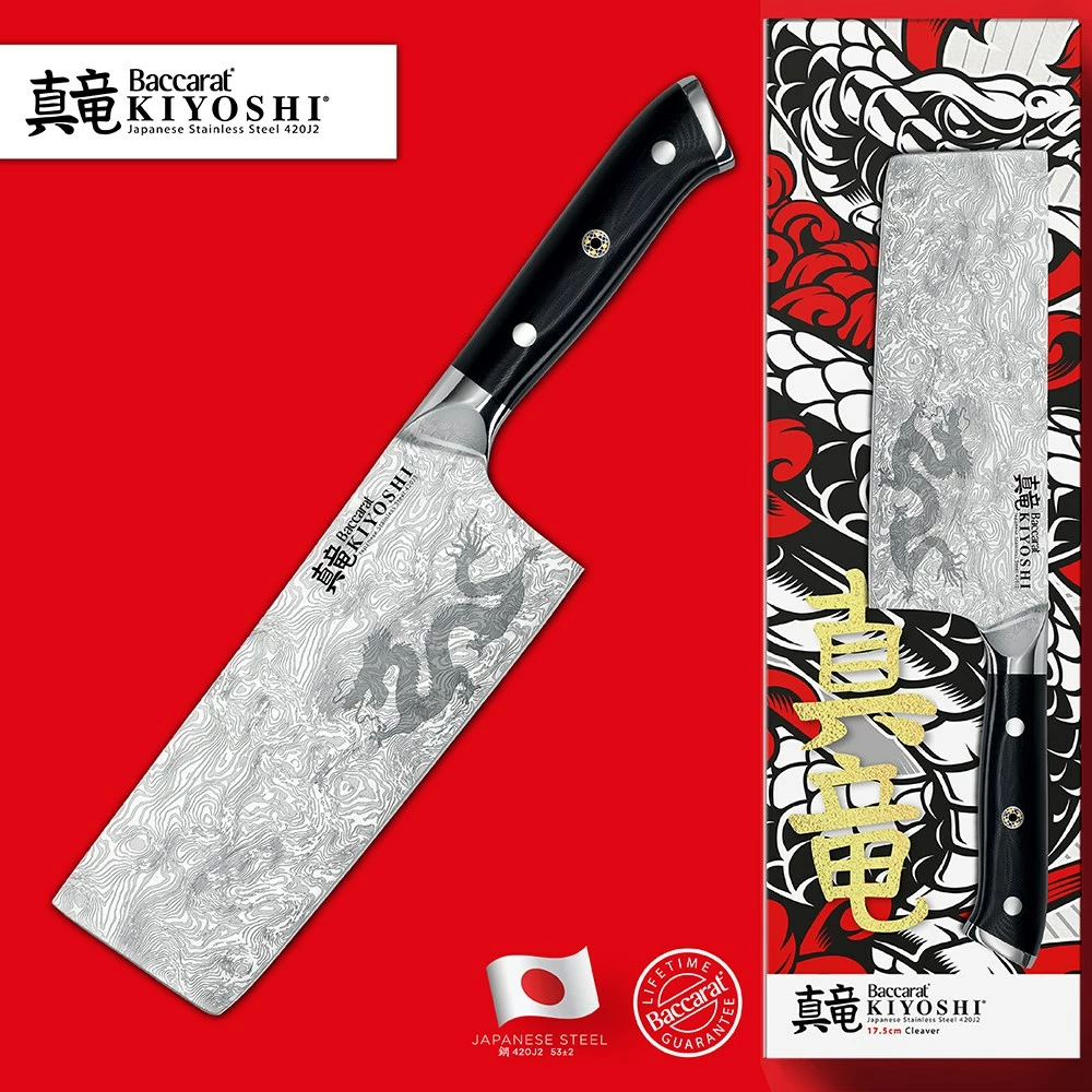 - The Baccarat® KIYOSHI™ Cleaver Knife blade will change the way you handle meats. In addition to being designed for portioning of poultry and varied cuts of meats, the Cleaver is perfect for cutting through heavier root vegetables with ease. It is engineered to be perfectly balanced and weighted, making chopping through bones a breeze.