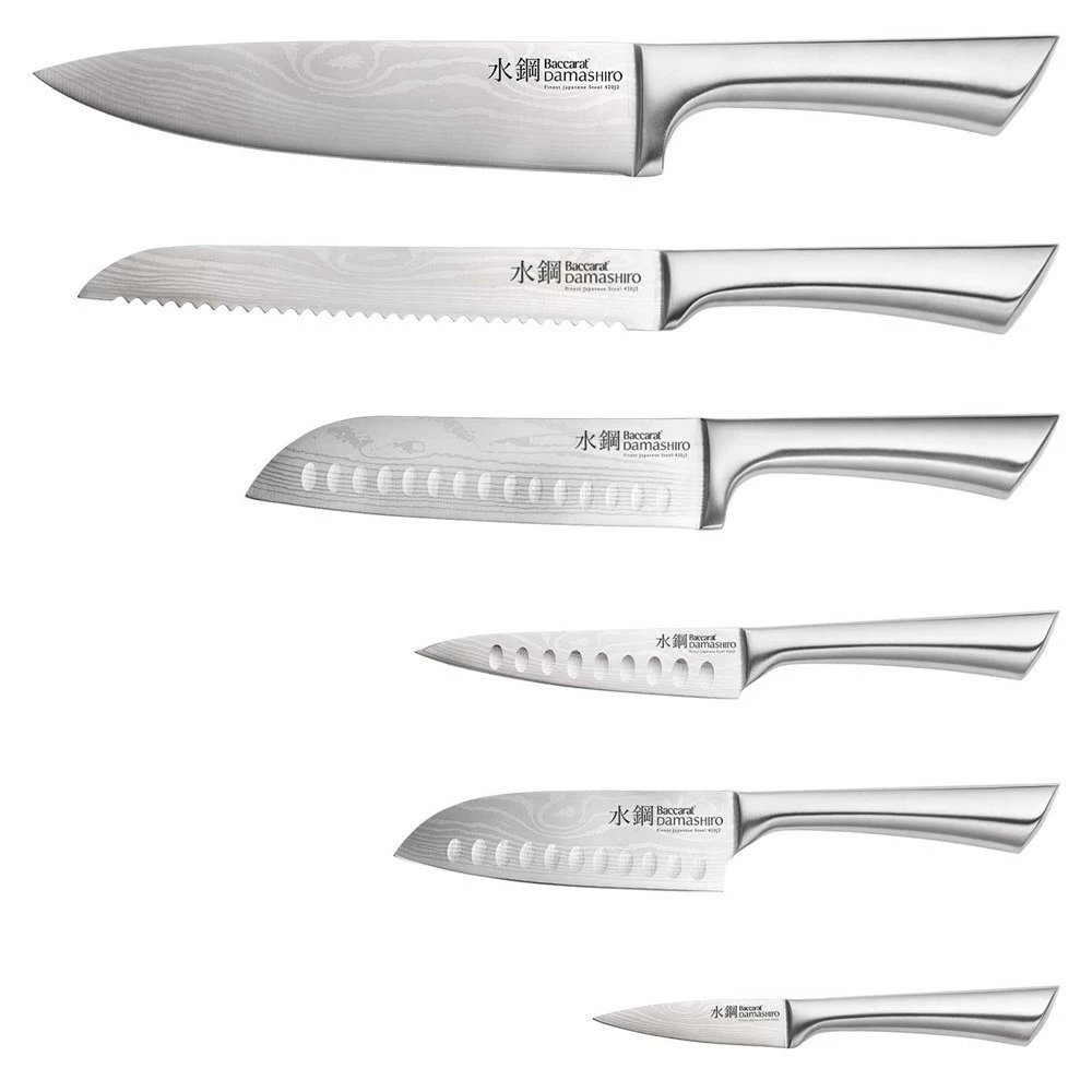 - The Baccarat® Damashiro® 7 Piece Kin Knife Block contains: 1 x 20cm/8″ Chefs knife, 1 x 20cm/8″ Bread knife, 1 x 17cm/6.5″ Santoku knife, 1 x 12.5cm/5″ Santoku knife, 1 x 12cm/4.5″ Utility knife, 1 x 9cm/3.5″ Paring knife