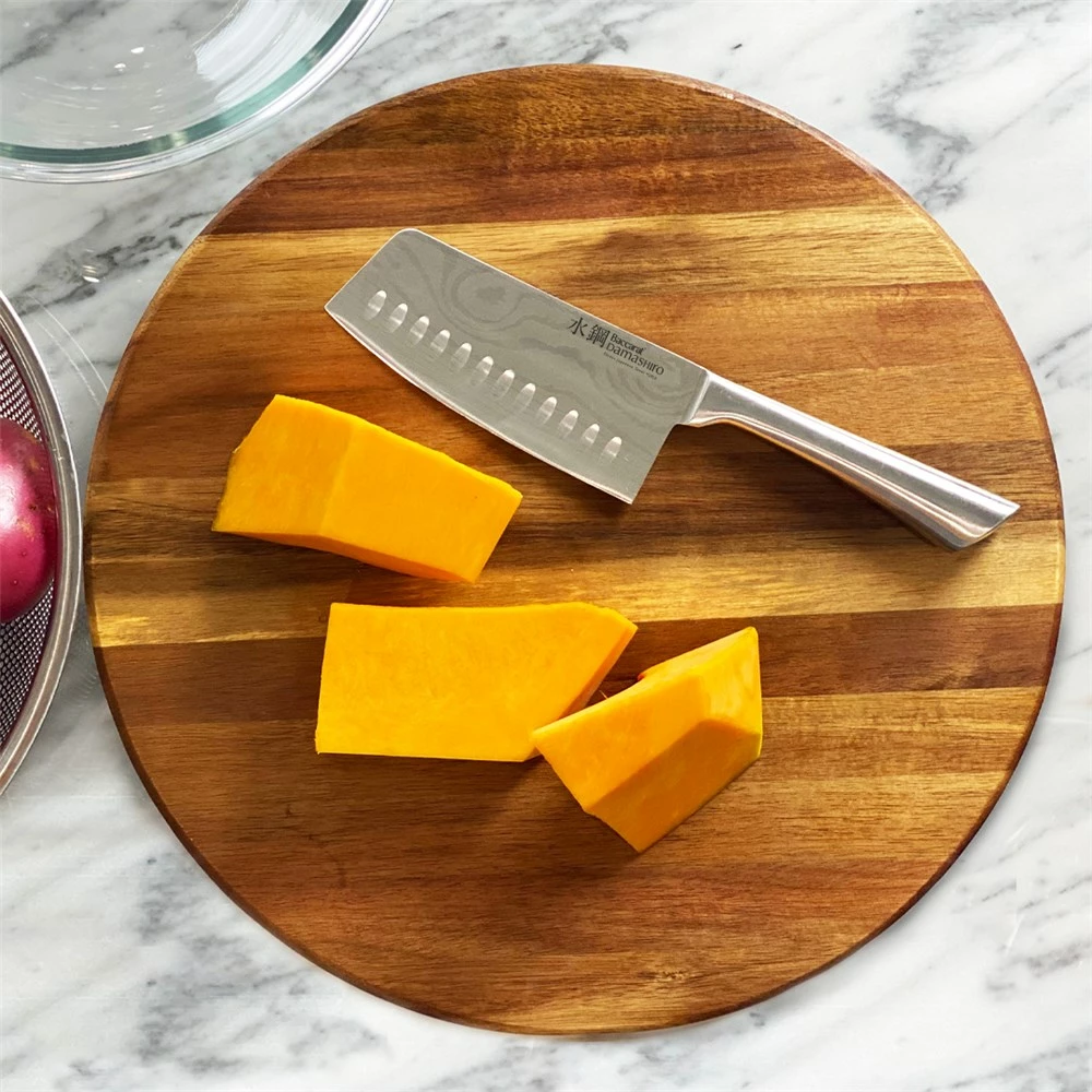 Complete your kitchen knife collection with the ultimate 2 in 1 knife, the Baccarat Damashiro Mini Cleaver/Santoku Try Me Knife!