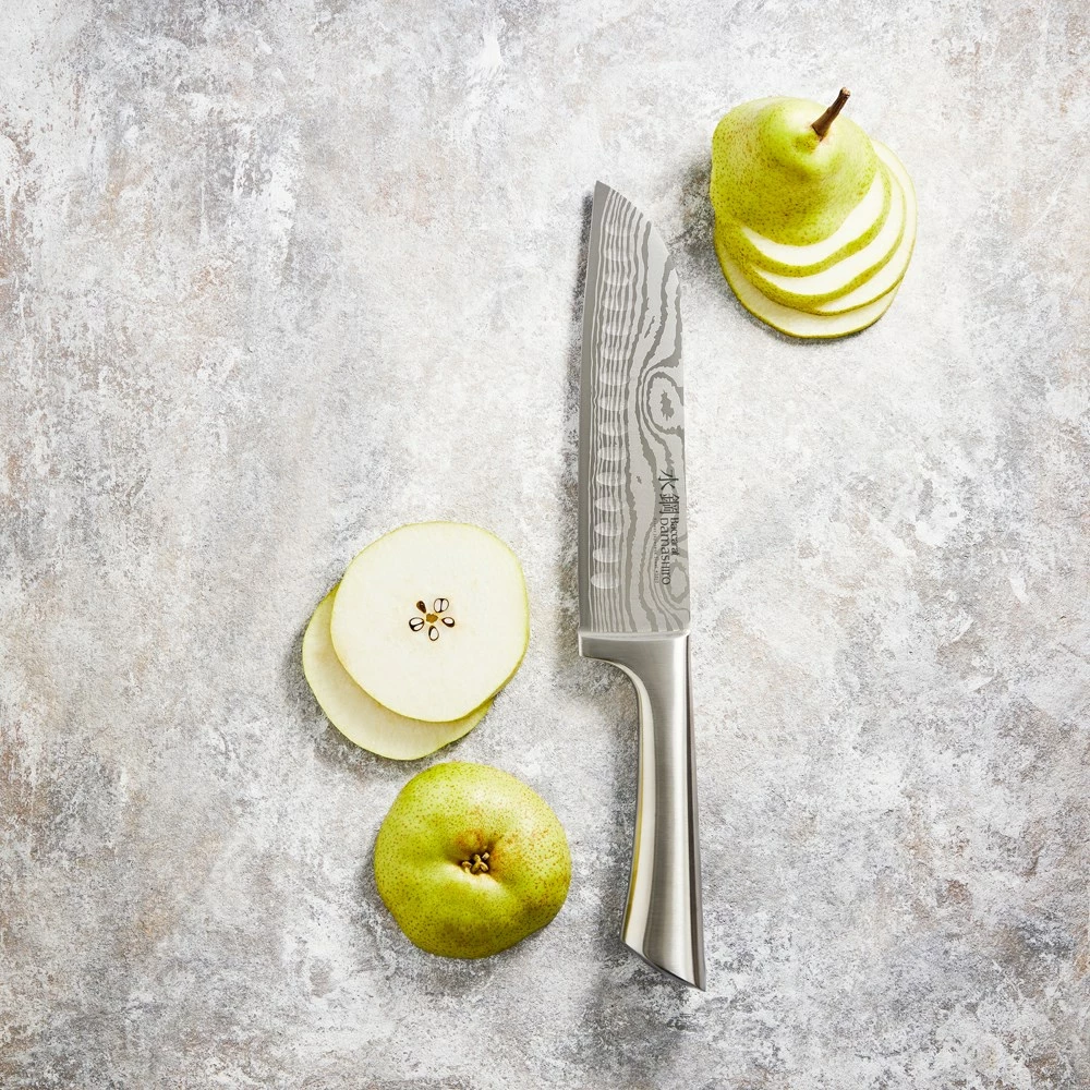- The distinctive Damascus inspired blade has been tapered to allow for a thinner and more precise cutting edge