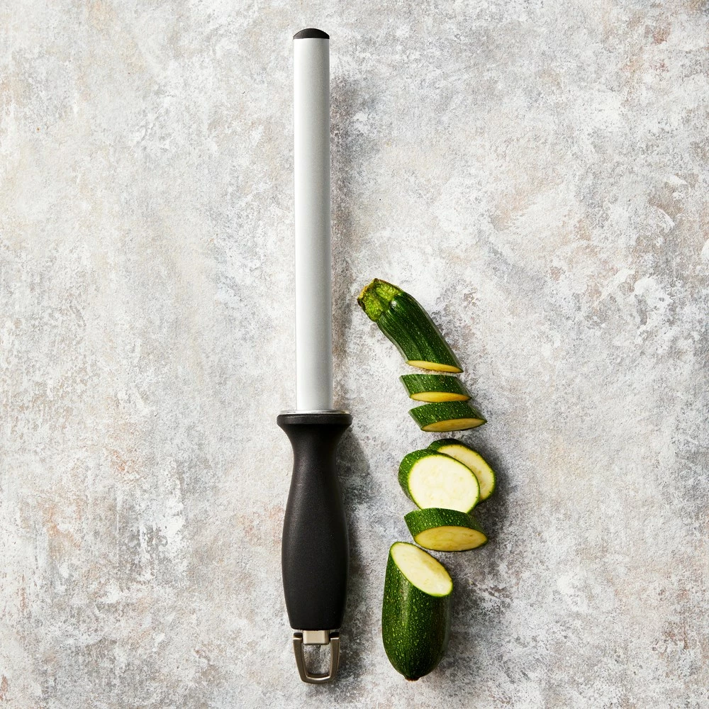 - Diamond encrusted stainless steel is perfect for keeping knives sharp and at the ready, with a comfortable sure grip handle