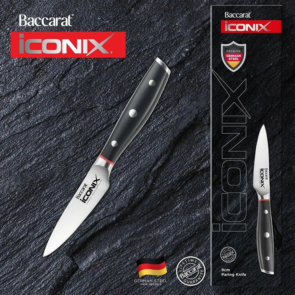 - The Baccarat® iconiX® Paring knife is our smallest kitchen knife. It has a razor sharp blade that is ideal for everyday culinary tasks of peeling and slicing fresh produce, or intricate work like deveining a shrimp, skinning mushrooms or cutting small garnishes.
