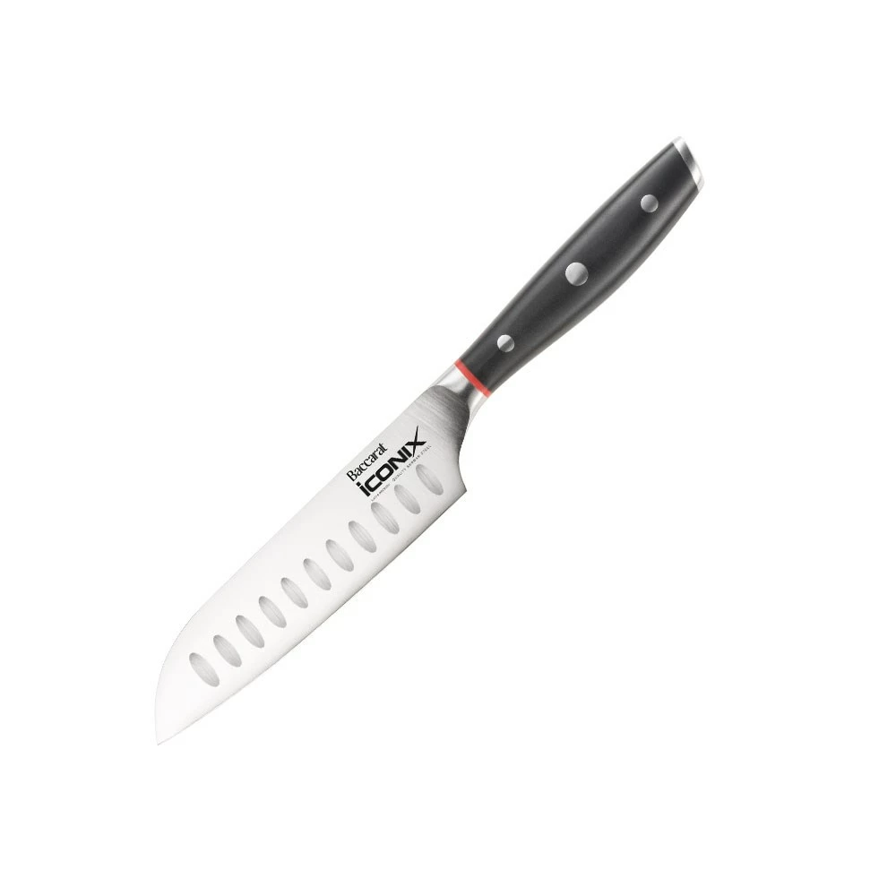 The Baccarat® iconiX® ‘Try Me’ Santoku Knife (12.5cm) is guaranteed to deliver you an agile chopping experience. The knife’s low tip and broad blade makes it a cook’s best friend for slicing, dicing and mincing.