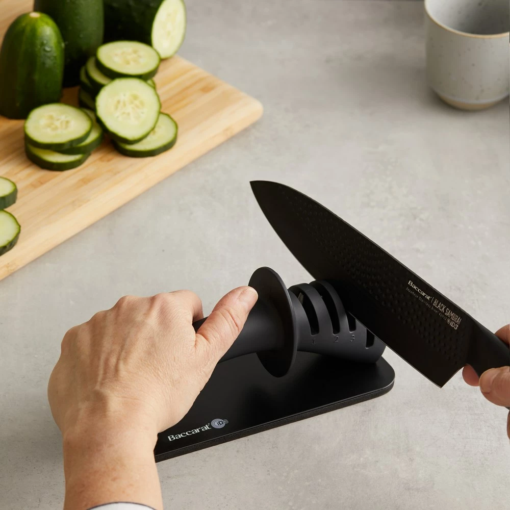 - Baccarat® iD3® BLACK SAMURAI™ 3 Step Knife Sharpener is arguably the most important tool in the kitchen