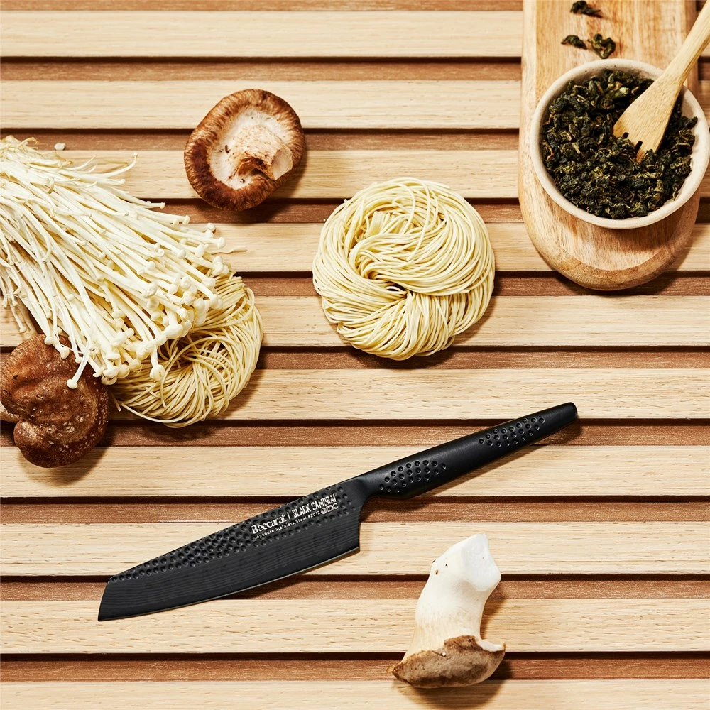 The Baccarat® iD3® BLACK SAMURAI™ Santoku (15cm) is guaranteed to deliver you the best agile chopping experience. The knife’s low tip and broad blade makes it a cook’s best friend for slicing, dicing and mincing.