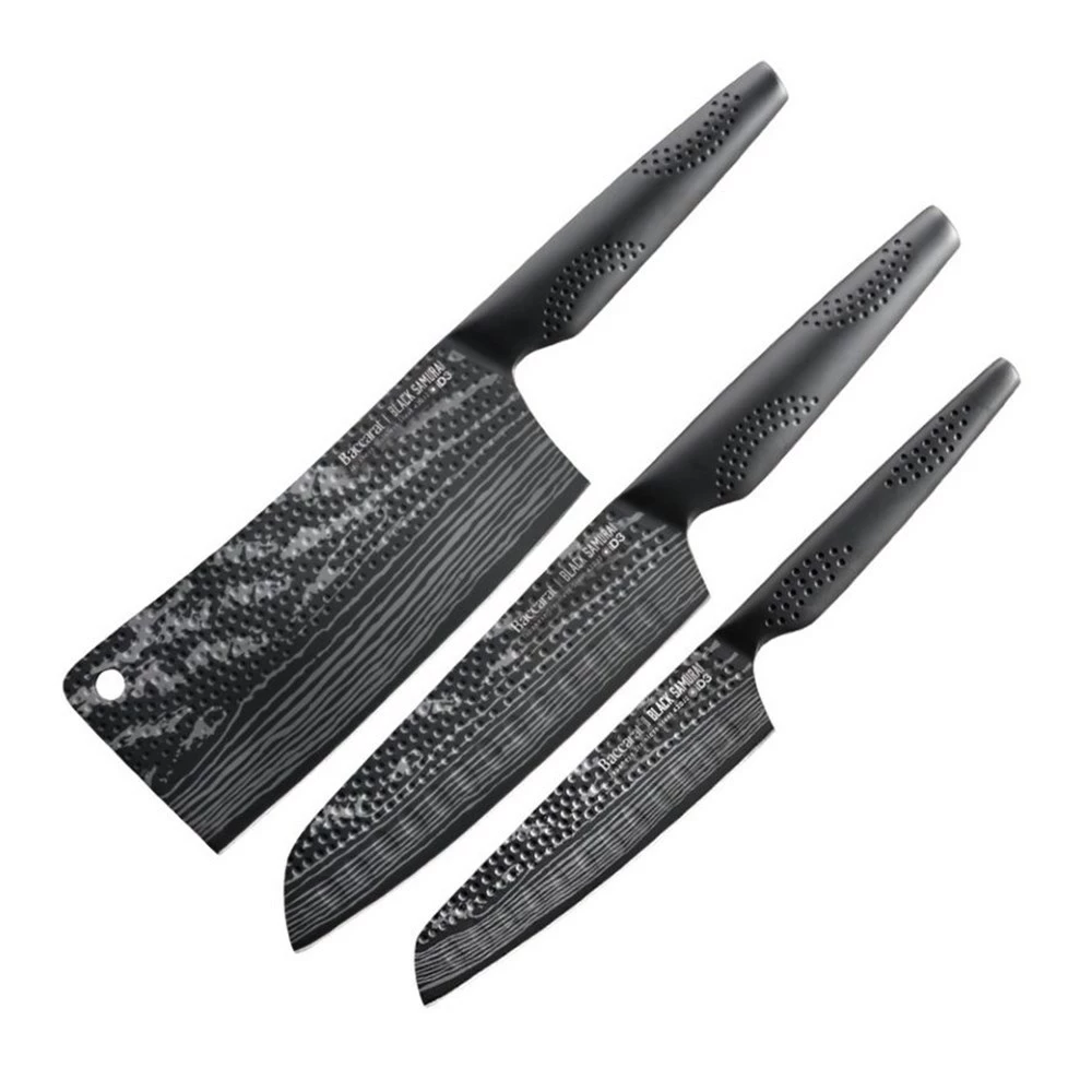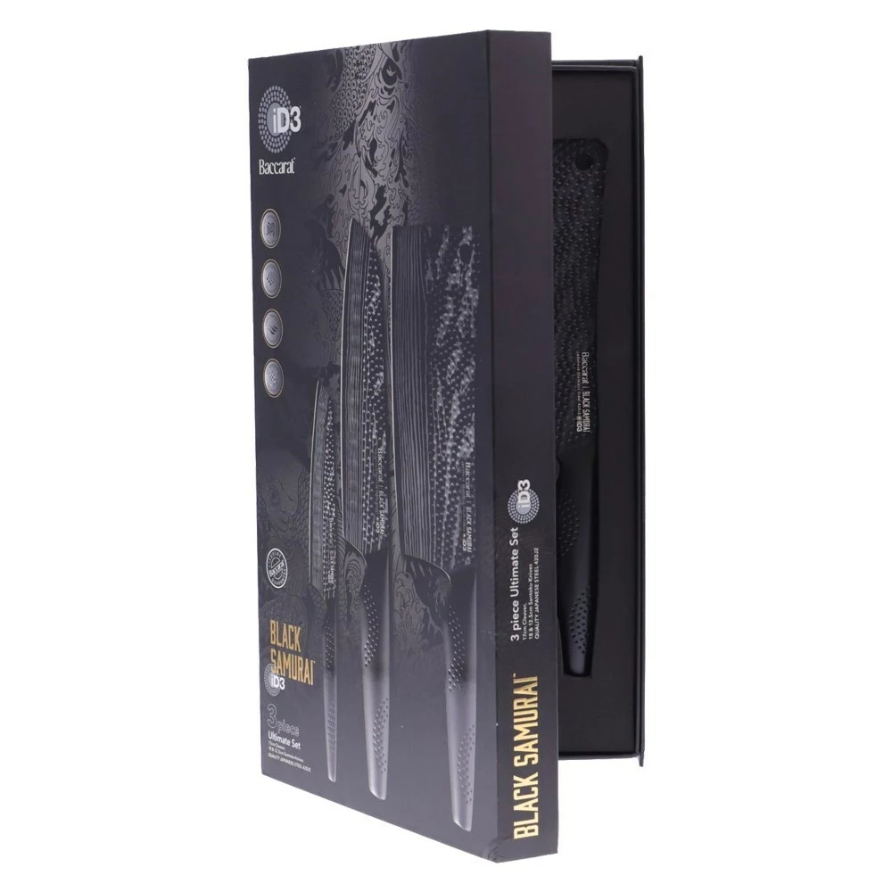 Enjoy fast and agile food preparation with premium Japanese steel Baccarat iD3 Black Samurai Ultimate Set of 3.