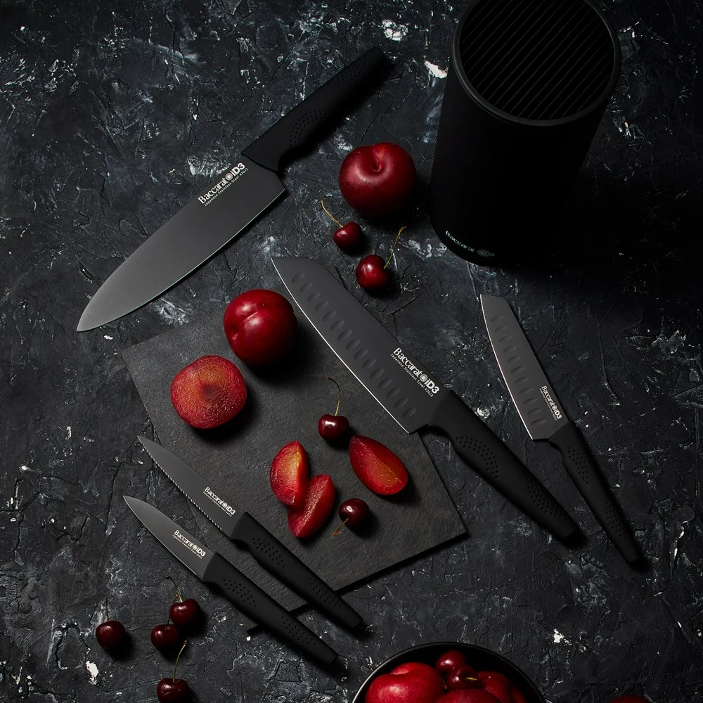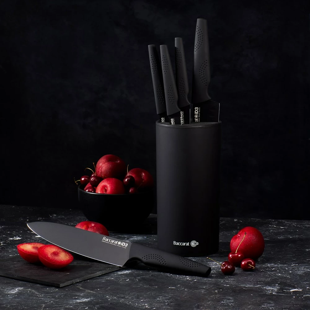 - The Baccarat iD3 Japanese knives are made from Japanese steel with a unique matte black ceramic coating, providing an antibacterial layer to the knives