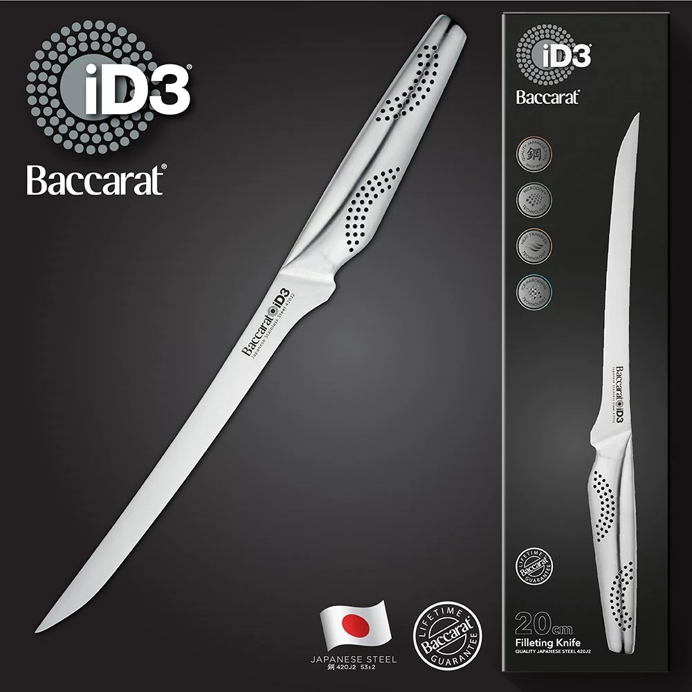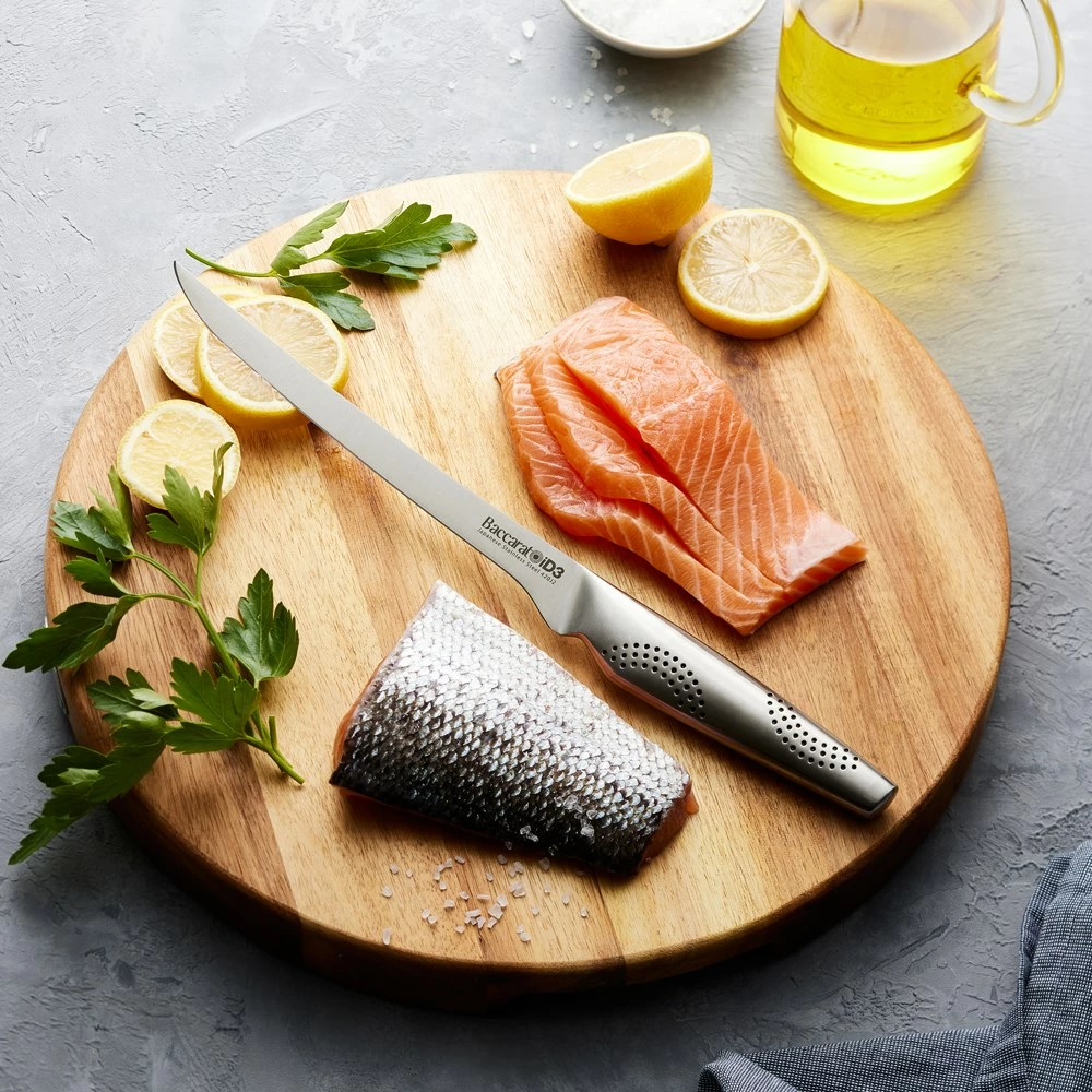 - Effortlessly work around tough skins and fine bones when filleting meat and fish with the Baccarat® iD3® Filleting Knife