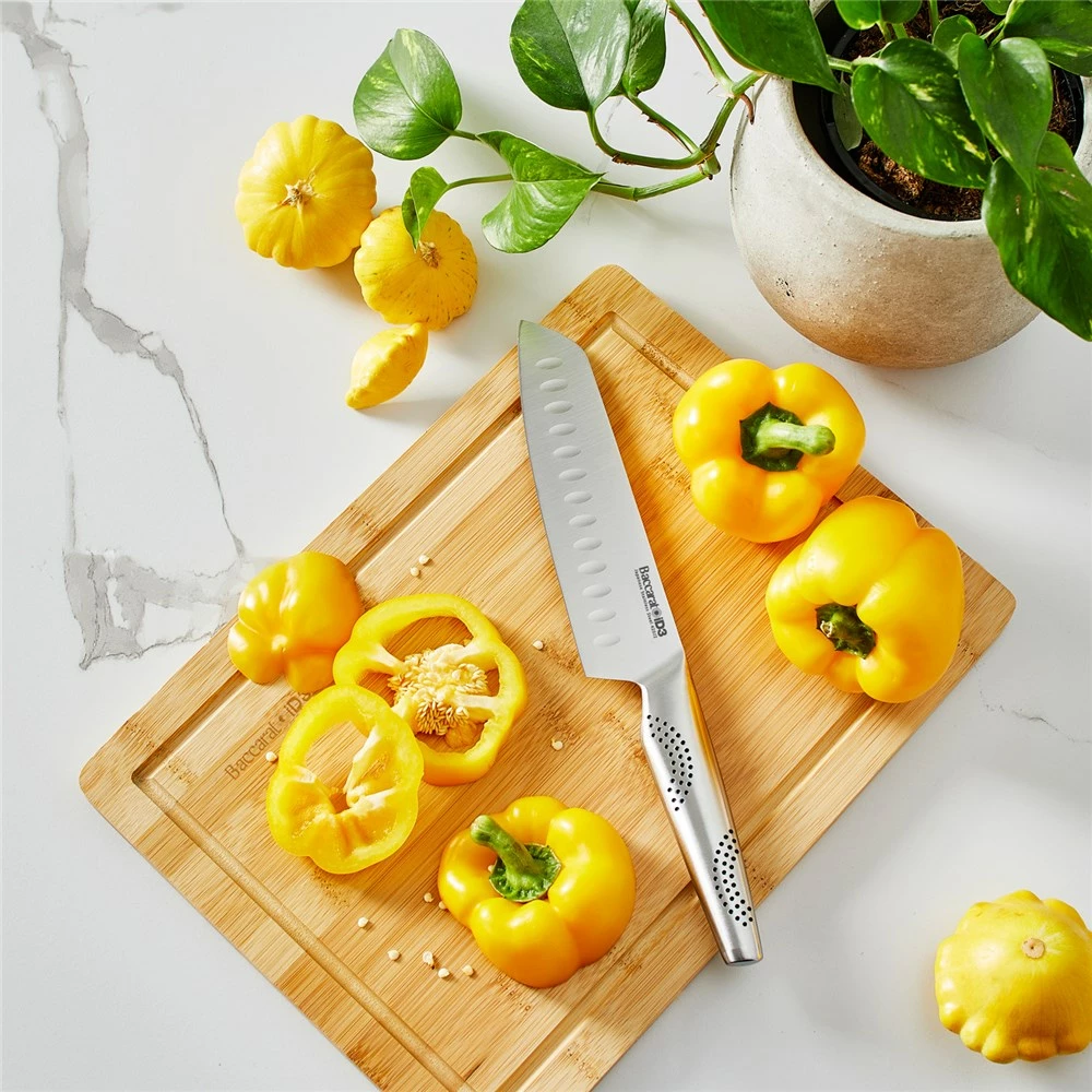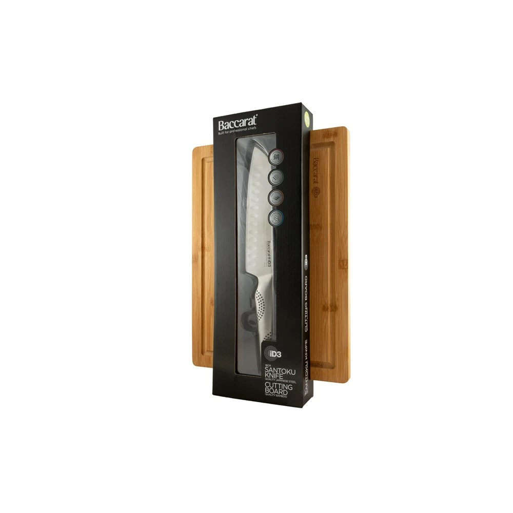 The Baccarat® iD3® Santoku Knife (18cm) & Board set is guaranteed to deliver you an agile chopping experience. The knife’s low tip and broad blade makes it a Cook’s best friend for slicing, dicing and mincing.