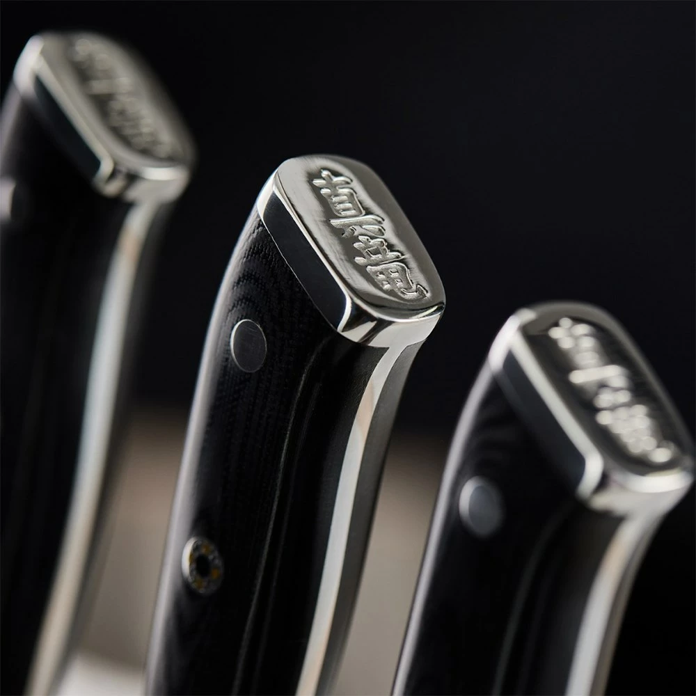 Baccarat® KIYOSHI™ knives have been crafted from the finest Japanese Steel 420J2 and ice-hardened ensuring superior blade strength and durability. The Japanese steel blade construction has been inspired by century old manufacturing techniques to create a super sharp cutting edge which holds a greater edge retention. This technique is favored by traditional Japanese craftsman.