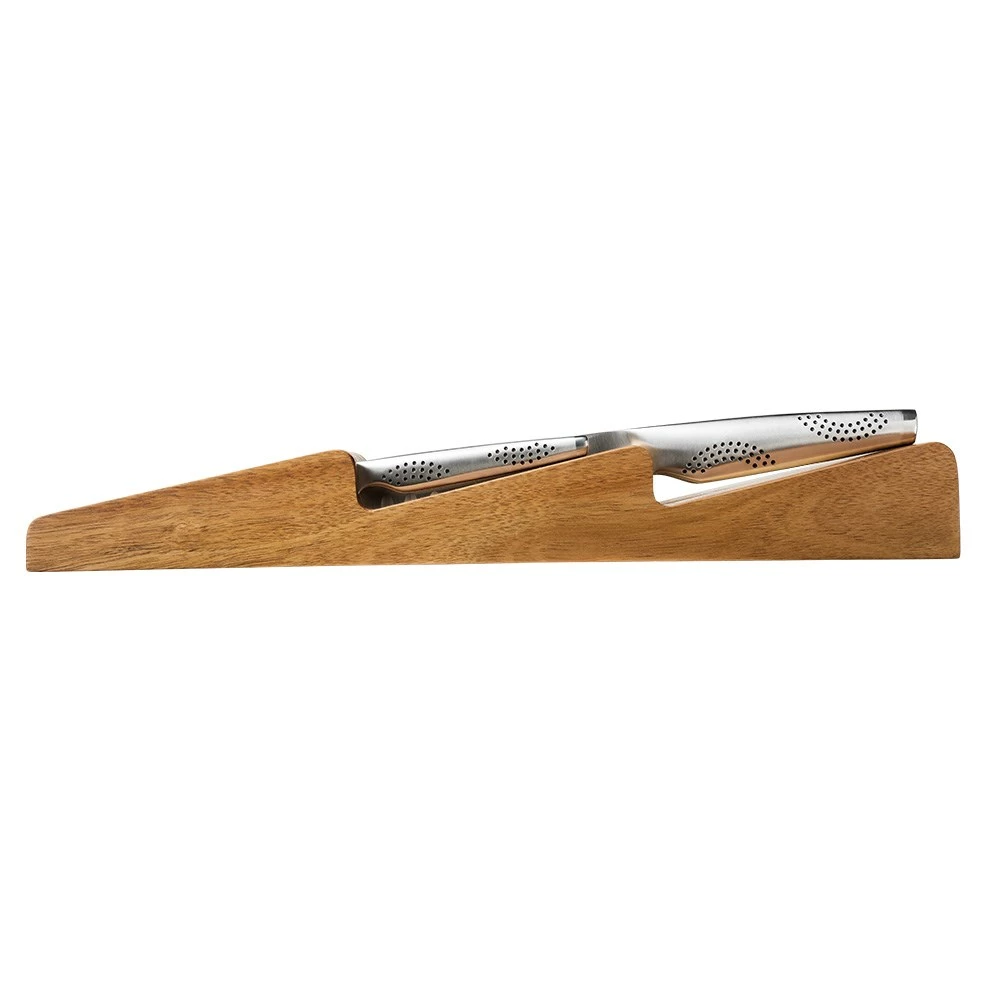 If you?ve got a collection of loose kitchen knives and nowhere to safely keep them, try storing them in the Baccarat Universal Acacia Knife Drawer Organiser! This must-have kitchen accessory is perfect for your mix-and-match collection of kitchen knives. Crafted from lightweight and durable acacia wood with a stylish tiered construction, the Baccarat Universal Acacia Knife Drawer Organiser can comfortably store up to 8 kitchen knives of varying size and blade length, making it an ideal solution for keeping your utility, santoku, bread knives and more neatly organised when stored inside your kitchen drawers. The Baccarat Universal Acacia Knife Drawer Organiser is also designed to keep your loose knives protected so that blades remain sharp and ready to use.