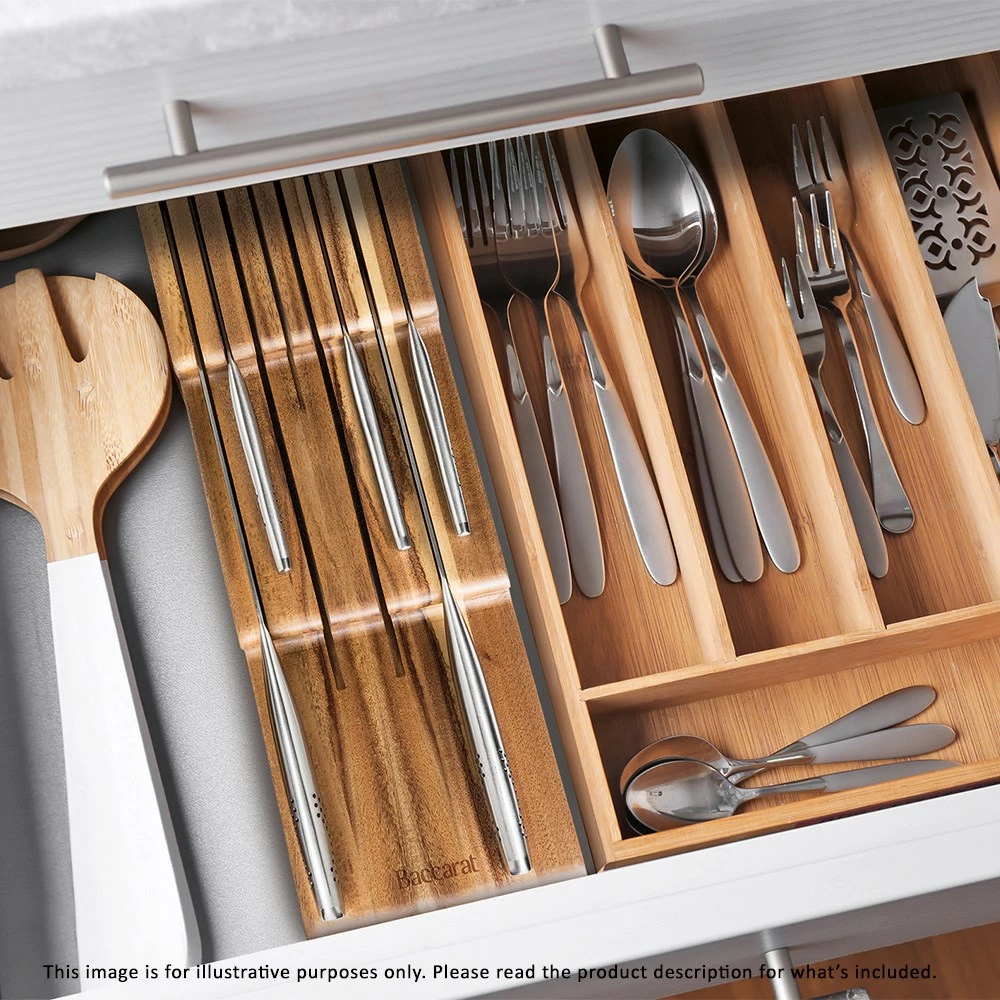 Loose kitchen knives and no block to put them in? Try storing them in the Baccarat Universal Acacia Knife Draw Organiser