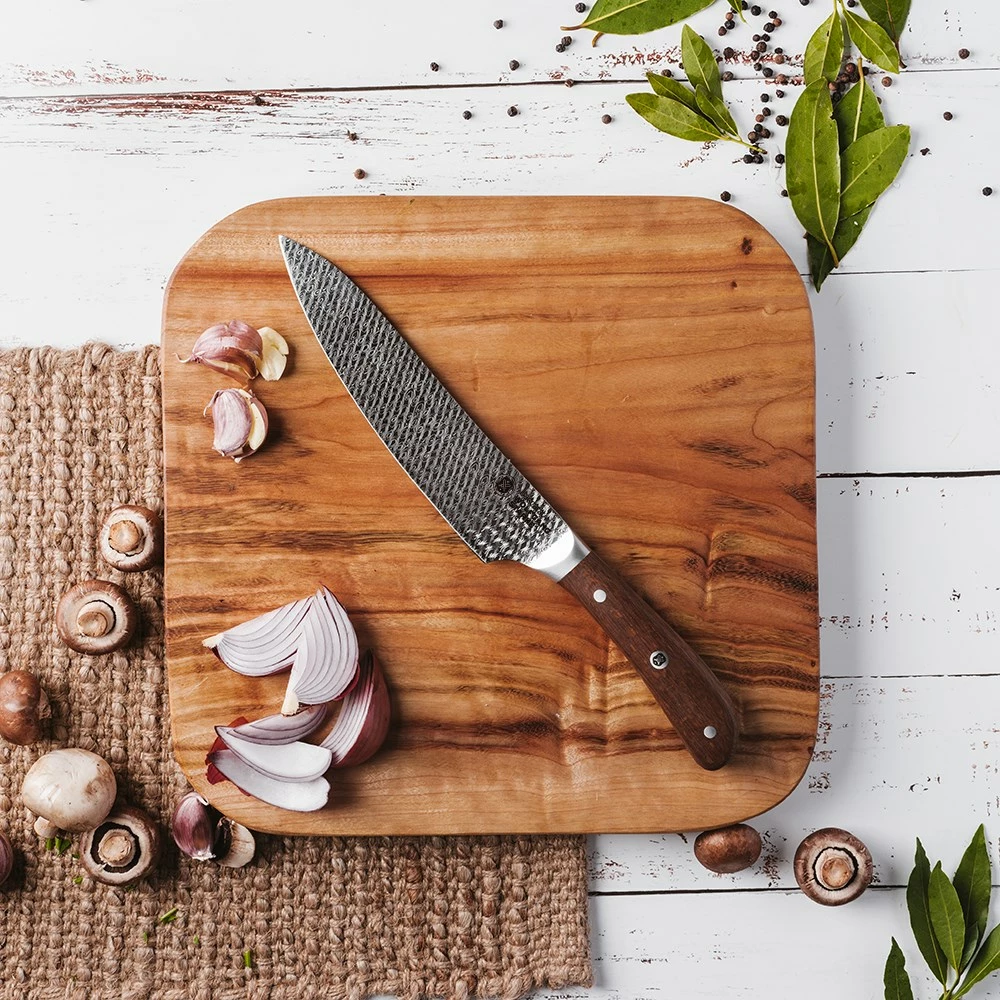 - Unique organic patterned blade texture not only looks stylish, but prevents foods from sticking when slicing