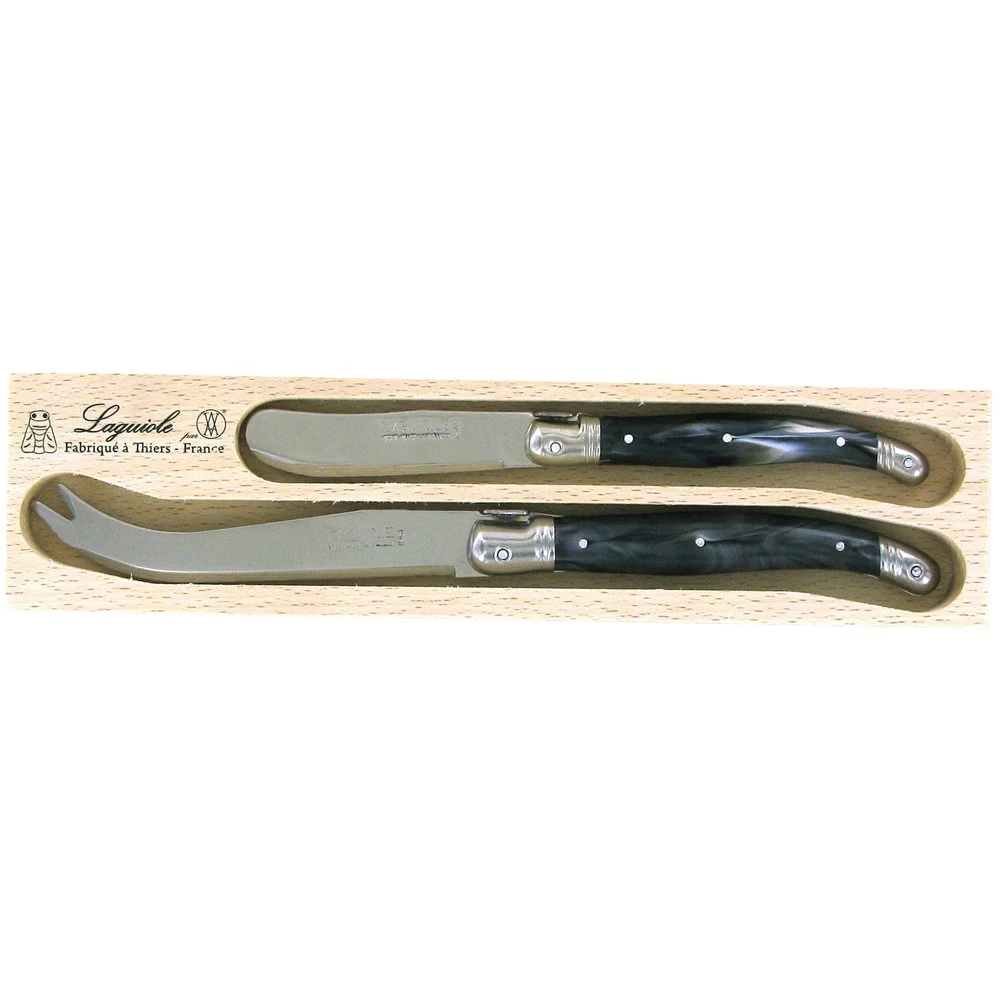 For lovers of timeless designs, set your serving platter with the Laguiole by Andre Verdier Debutant Cheese Knives. Stunningly crafted from the finest quality stainless steel and resin in the traditional style of the Laguiole region, the Laguiole by Andre Verdier Debutant Cheese Knife Set features tapered blades and riveted handles fitted with the instantly recognisable Laguiole bee. The perfectly balanced knives will make slicing and serving hard and soft cheeses a pleasant and comfortable experience. Pair with matching pieces from Laguiole by Andre Verdier’s Debutant range for a classic serving set.