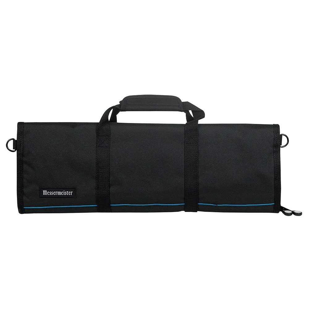 Designed for professionals on the move, the Messermeister Padded Knife Roll is an essential accessory for every chef. Made using authentic, abrasion resistant 600 denier polyester with added foam padding to the exteriors, the Messermeister Padded Knife Roll protects and ensures your blades stay at their optimal condition. Fitted with YKK zippers, the Messermeister Padded Knife Roll can be condensed to a comfortable, portable size and features a padded handle grip for comfort.