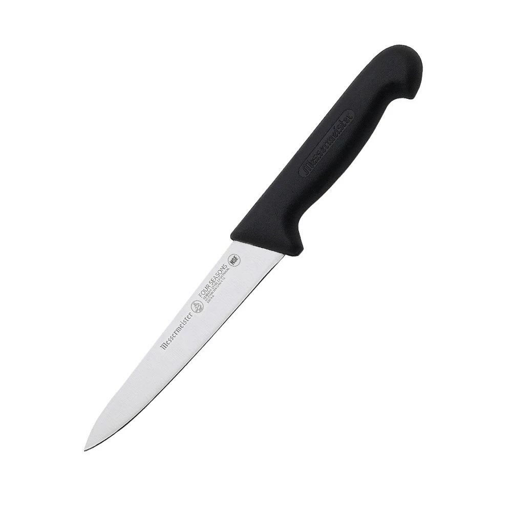 Chop up your delicious fresh ingredients using the Messermeister Four Seasons Spear Point Utility Knife 15cm! Fantastic for taking care of all kinds of food preparation tasks, this utility knife is a wonderfully versatile addition to your kitchen knife collection. Made from ultra-tough German stainless steel, the Four Seasons Spear Point Utility Knife offers enduring performance and lasting durability. Ideal for both professional chefs and avid home cooks, the Four Seasons Spear Point Utility Knife is a commercial grade kitchen knife that makes food prep a breeze. Complete with a hygienic moulded polypropylene handle for exceptional comfort and control, this utility knife is also equipped with a 15-degree cutting edge that’s built for easy re-sharpening with a honing steel. Bring exceptional quality and style to your kitchen with the Messermeister Four Seasons Spear Point Utility Knife!