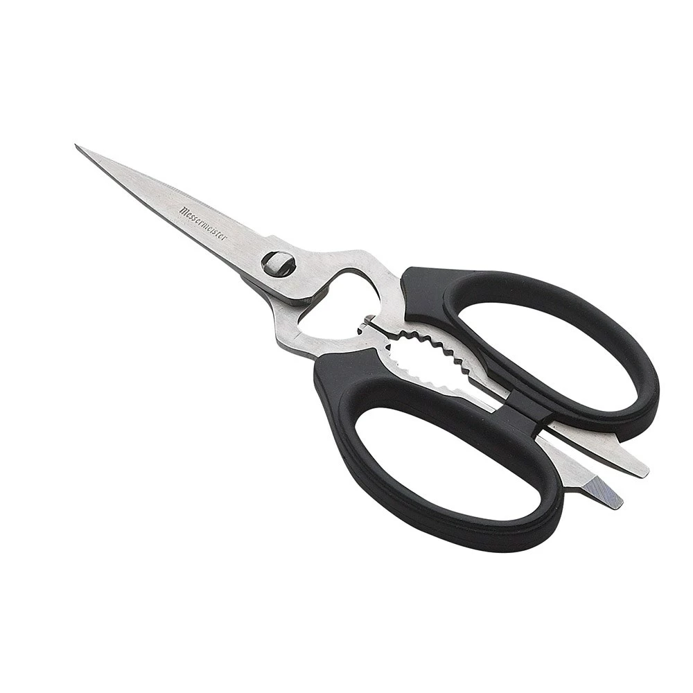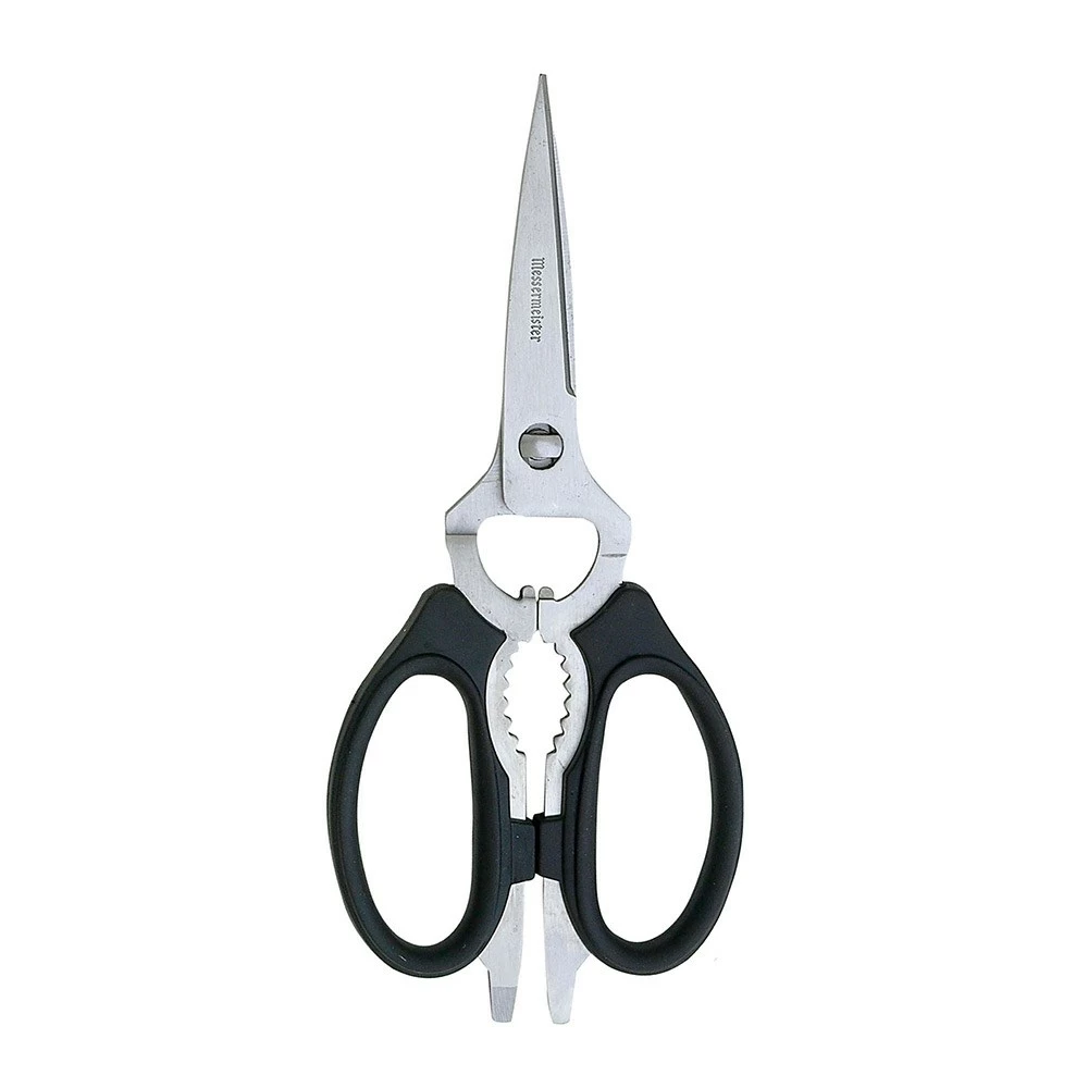 Enjoy the convenience of a single pair of kitchen scissors capable of handling all your kitchen tasks and more with the Messermeister Take-Apart Kitchen Scissors. A truly versatile pair of kitchen scissors, the Messermeister Take-Apart Scissors are crafted from the finest quality German stainless steel for a strong, super-sharp blade end that remains resistant to warping and rusting. Large handled to accommodate left and right-handed users, the Messermeister Take-Apart Kitchen Scissors are comfortable to hole whether cutting food packaging, dicing bacon, clipping herbs and more. Also suitable for using as a jar and bottle opener, screw driver, bone and twig cutter, and nutcracker, the Messermeister Take-Apart Kitchen Scissors conveniently separate to make washing by hand easy.