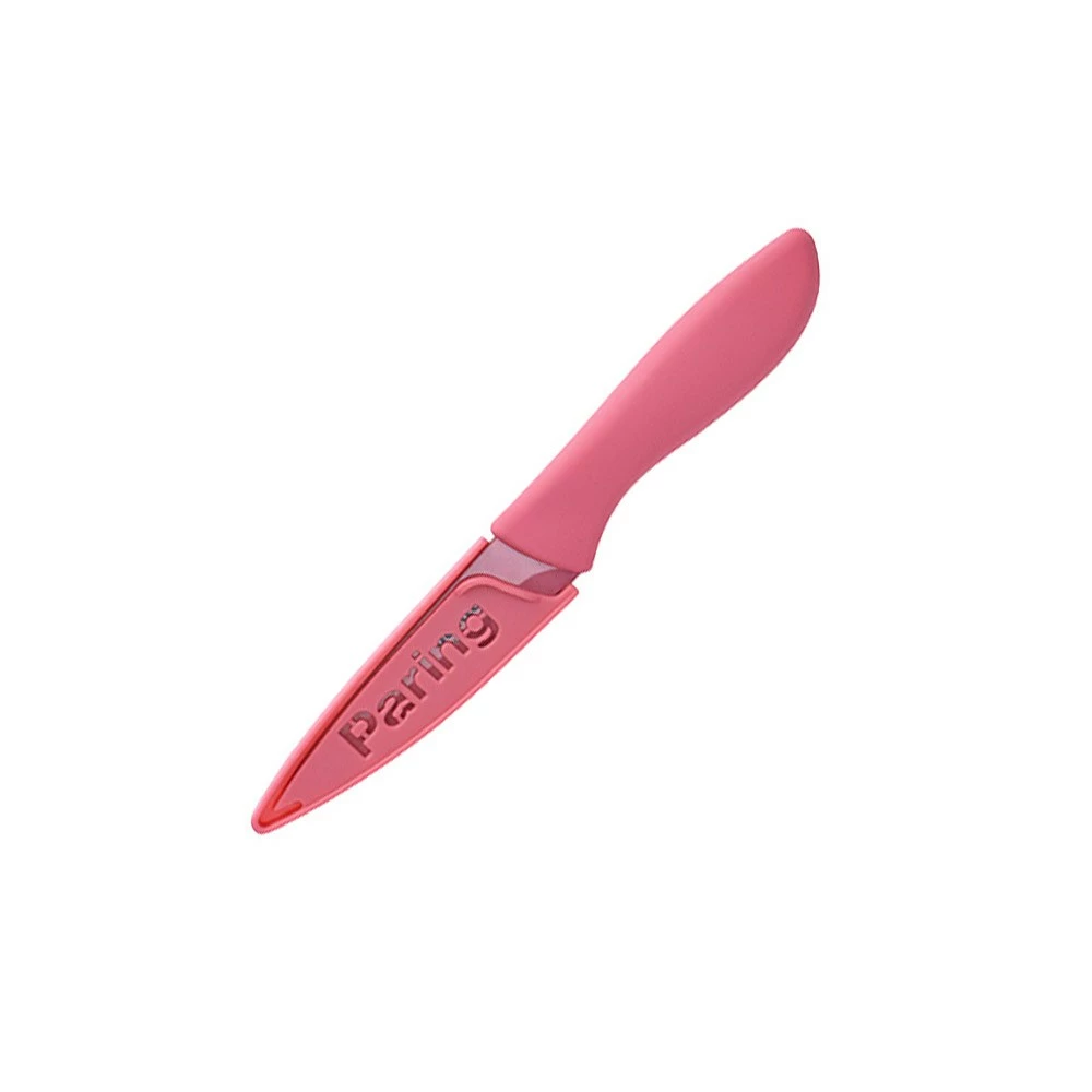 Peel fresh fruits and vegetables with the high-performance Kolori Stainless Steel Paring Knife by Scullery! Fantastic for taking care of all your everyday intricate cutting tasks, this knife is a versatile addition to your culinary collection. Great for adding a pop of vibrance and personality to your culinary space, this knife features a beautiful pink coloured handle and a matching blade protector for safe and secure storage. Made from professional quality stainless steel, this knife offers lasting durability and features a non stick coating for easy slicing and to keep the blade sharp for longer. It features a soft touch handle which provides a comfortable and secure grip when slicing and dicing. Dishwasher safe for easy cleaning and your convenience, the Kolori Paring Knife by Scullery is the ultimate addition to your essential kitchen knife collection.