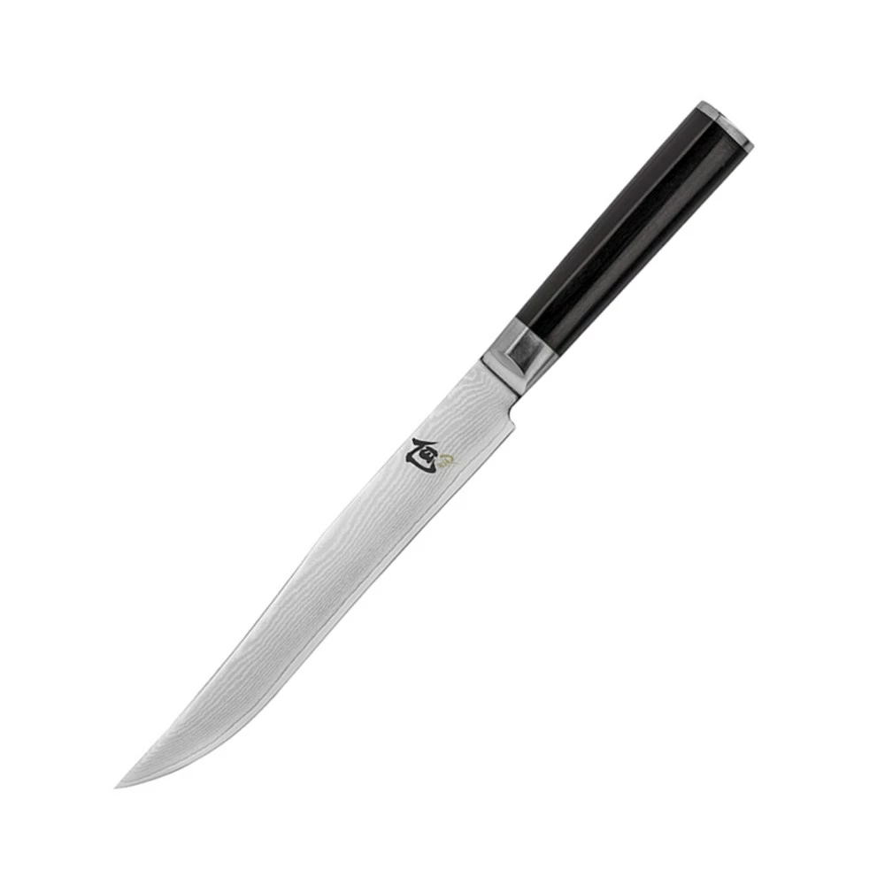 With the Shun Classic Carving Knife, you can carve the perfect slice of meat or poultry. It’s the ideal knife for carving paper-thin or thick and juicy slices. The razor-sharp blade creates a cleaner cut, which helps to preserve more juices—and flavor—trapped in the meat. The longer blade allows you to produce precise slices with a single stroke, and the pointed, narrow tip allows you to easily cut meat away from the bone. The Shun Classic Carving knife handles turkey, steak, or the delicate flesh of a festive salmon with ease, keeping the taste sealed in and ensuring your tableside presentation is flawless. Shun Classic knives include Damascus-clad blades and D-shaped ebony PakkaWood® handles. Behind the beauty of these handcrafted knives lies function: razor-sharp blades that work admirably.