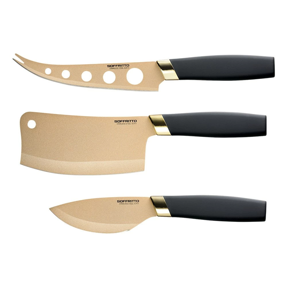 Soffritto 3 Piece Antibacterial Stainless Steel Cheese Knife Set Gold