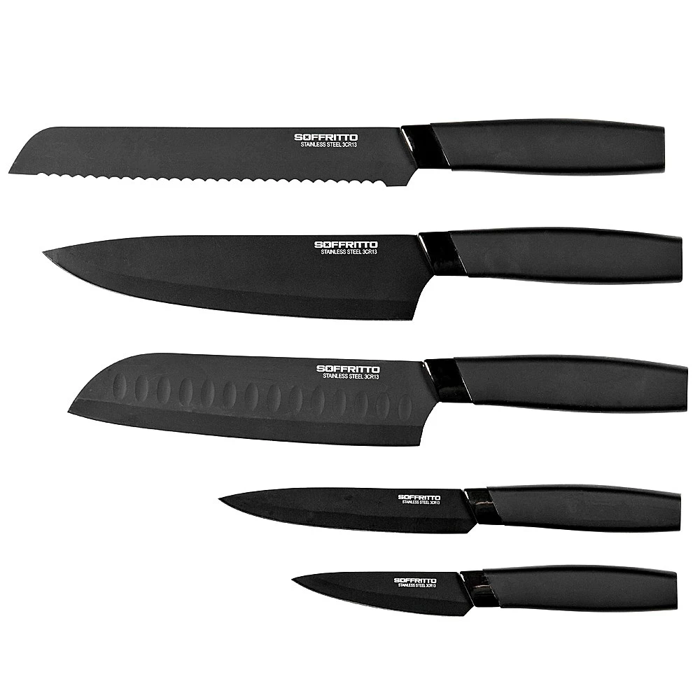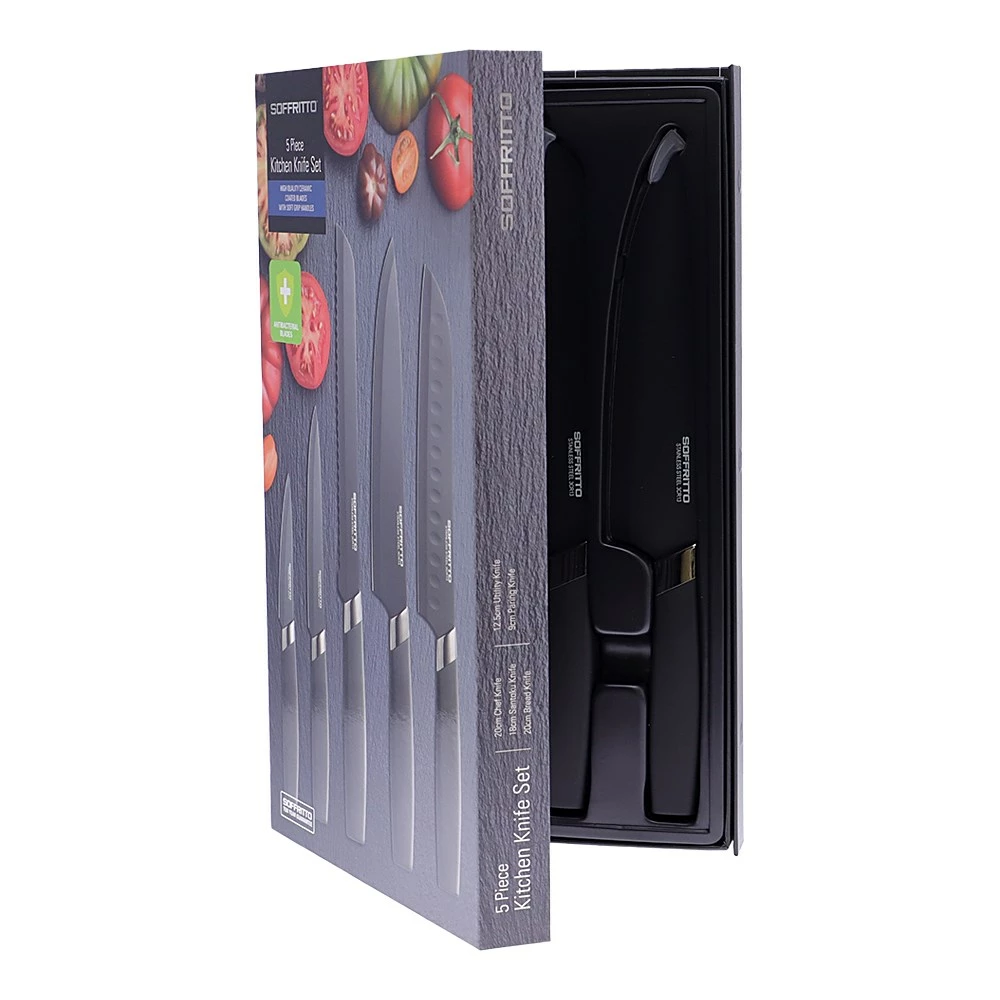Soffritto 5 Piece Antibacterial Kitchen Knife Set Black