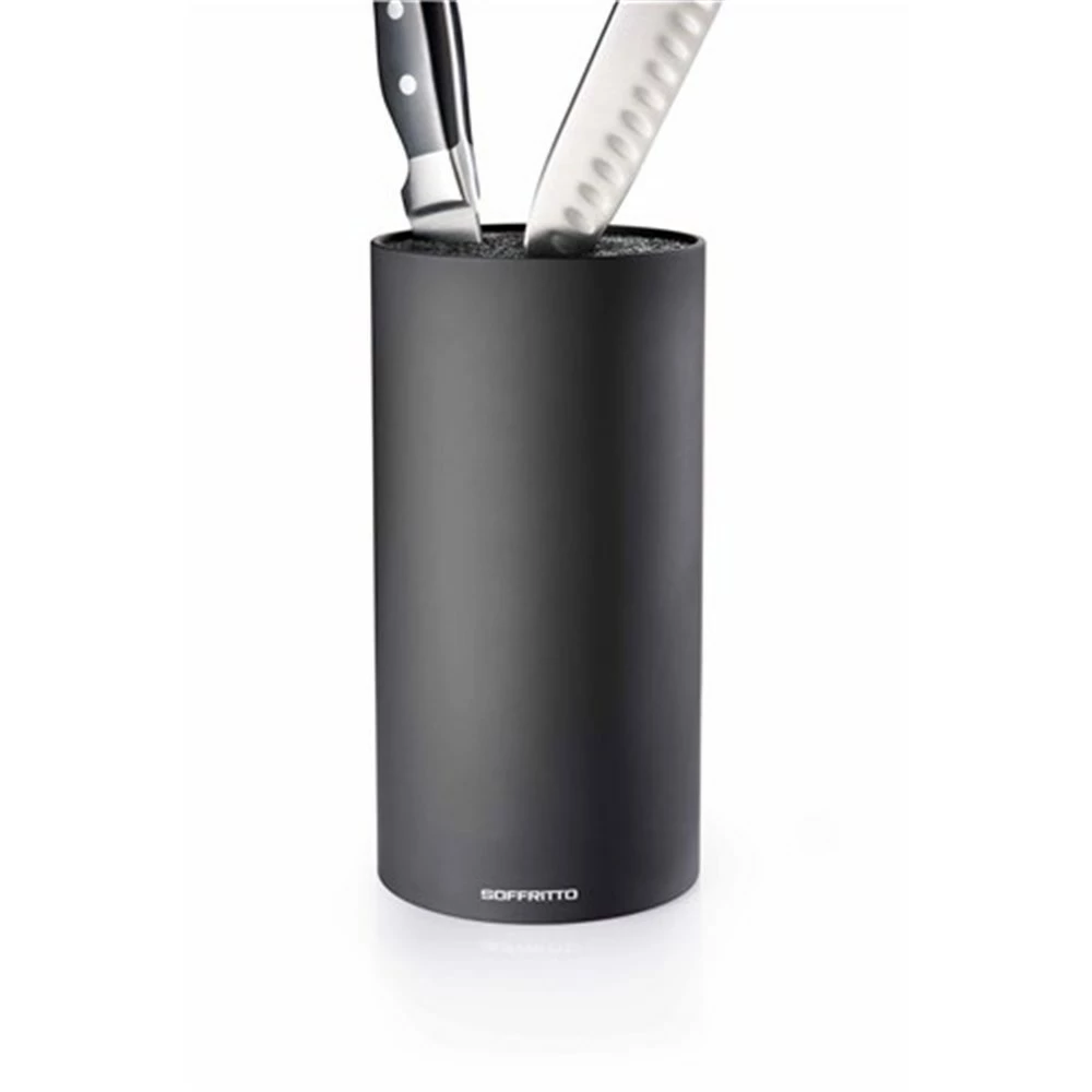 Keep all your knives in one place with the Soffritto Universal Knife Block. Unlike other knife blocks that only accommodate particular knives, the Soffritto Universal Knife Block will hold a wide range of knives from different brands allowing for secure and easy storage. The fine straws will keep your knives sharper and secure them safely in place. Featuring a classic black compact design, the Soffritto Universal Knife block will easily adapt to any décor and save valuable kitchen space.