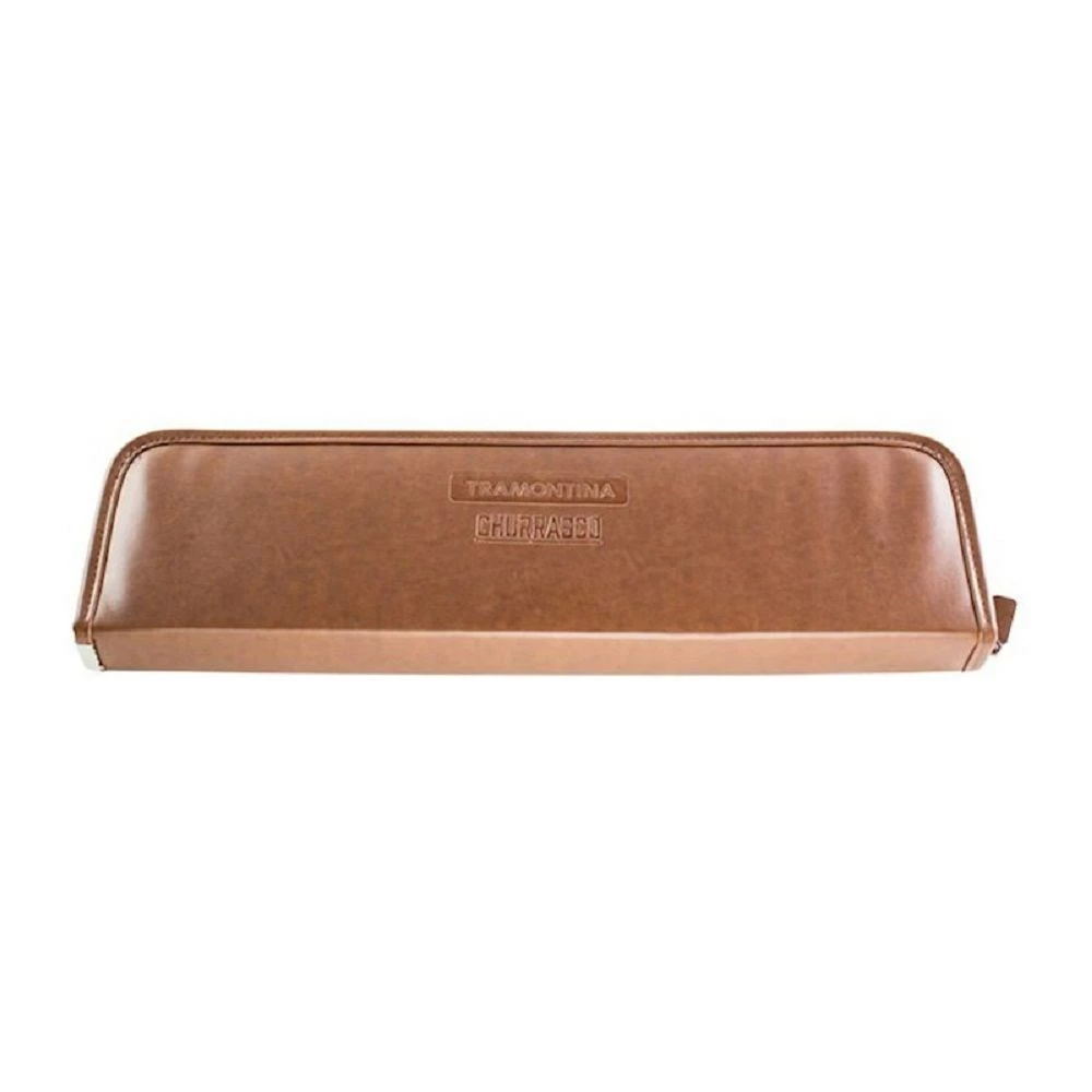 Grill, slice, and serve delicious roast meats for guests to enjoy with the Tramontina Churrasco BBQ Carving Set. This 4-piece set includes a stunning carving fork with double-prong head that effectively holds roasts in place while you carve, a carving knife for effortlessly slicing through succulent lamb, chicken, and ham, and pronged BBQ tongs for gripping, flipping, and serving meats, seafood, and produce straight off the grill all stored inside a tan leather case with soft interior and zipper closure, that keeps your carving tools together and protected when not in use. Crafted from quality stainless steel, the pieces in the Tramontina Churrasco Carving Set are all fitted with double-riveted polywood handles with light contouring for comfort and a secure grip. The perfect addition to your home, the Tramontina Churrasco Carving Set also makes a wonderful gift to a fellow grill master.